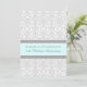 Tarjeta de invitación a la fiesta de aniversario de bodas de plata en elegante azul turquesa claro, gris y blanco patrón damasco floral clásico romántico vintage, delicado y contemporáneo. Personalizable con los detalles de tu fiesta.