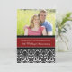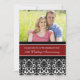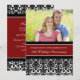 Tarjeta de invitación personalizada para la fiesta de aniversario de bodas número 20 en elegante patrón de damasco floral clásico de color rojo carmesí, negro y blanco, delicado y moderno. Personalizable con los detalles de tu fiesta y tu propia foto.
