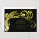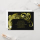 ¡No hay mejor manera de empezar cada año nuevo que un fiesta de Nochevieja! Deje que su elección de invitación ponga el ambiente para sus huéspedes, desde lo fresco y divertido hasta lo clásico de la elegancia. Este diseño tiene un fondo negro. A la izquierda y por encima de la parte superior hay un diseño de desplazamiento con estilo de pluma dorada que crea una elegante invitación, perfecta para tu evento de corbata negra. El texto está centrado hacia abajo.