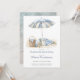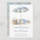 Invitación a una fiesta de soltero, con tema de playa con paraguas color agua, manta, picnic. Disponible en forma impresa, como descarga digital, o ambos.