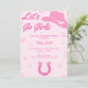 Invitación a la fiesta de la Bachelorette de Chicas Rosadas Celebra a la futura novia con esta divertida y temática invitación a la fiesta de la soltera. ¡Añade texto personalizado para personalizar para tu novia vaquera! Los elementos de la chica de vaca rosa coincidentes se pueden encontrar en la colección de fiestas de Bachelorette Pink Cowgirl