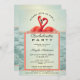 Una elegante invitación a una fiesta de soltera o de gallina con dos flamencos románticos sobre un brillante fondo de agua verde azul claro con toques de colores de coral vibrantes.