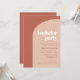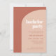 Invitación a la bachillerato: celebra tus últimos días como soltero con tus mejores amigos y familia. Recibe una invitación moderna para organizar una fiesta memorable. Minimalista pero sorprendente: adoptar este diseño tipográfico ligeramente retro y elegante para su papelería boda, con un diseño de arco moderno y colores de terracota y naranja quemado. Personalizable completo de texto, colores y fondos.