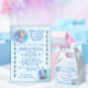 "Deseos de Arándanos y Besos de Gnomos" es una invitación que captura hermosamente la esencia de celebrar una nueva vida. Este diseño presenta nubes, tonos azules y púrpuras, lo que lo hace adecuado para una fiesta de bebé niño, mientras que las gnomas con faldas lindas también lo hacen apropiado para una fiesta de bebé niña. Este encantador tema de arándanos y gnomos personifica la magia de dar la bienvenida a un nuevo bebé. La encantadora imaginería de jugosos arándanos combinada con los caprichosos gnomos crea una invitación que inspira alegría y asombro para todos los invitados. ¡Haz que tu fiesta de bebé sea inolvidable! Echa un vistazo a nuestra colección para obtener más ideas divertidas para celebrar esta ocasión especial.