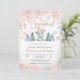 Celebra tu día especial con esta encantadora invitación de baby shower de invierno que presenta a un adorable elefante bebé con un sombrero a rayas rosado rodeado de árboles de pino nevados, toques dorados y detalles florales delicados. Perfecta para homenajear a los futuros padres, este diseño caprichoso combina la elegancia de la temporada con un encanto juguetón. Personaliza con los detalles de tu evento para crear un recuerdo memorable que tus invitados adorarán. Ideal para celebraciones de invierno, esta invitación agrega calidez y alegría a tu reunión.