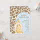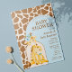 Esta invitación a la fiesta de bebé jirafa niño es perfecta para celebrar a tu pequeño en camino. El diseño de jirafa y azul polvoriento es ideal para una celebración de fiesta de bebé niño.
