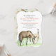 Esta obra de arte de potro de caballo de Jessica Drake es la forma perfecta de enviar una invitación a la fiesta de bebé de tu nuevo bebé niño o niña. Totalmente personalizable para decir justo lo que quieres, esta invitación de fiesta de bebé equestre seguramente será un éxito. Cuenta con colores verdes y amarillos neutrales para ambos sexos.
