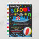 ¡Invitación a la fiesta de despedida en la piscina de escuelas, diversión y creativa fiesta de graduación para celebrar el fin del año escolar!