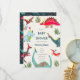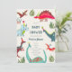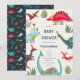 Una encantadora invitación a bañarse con dinosaurios dinos con dinosaurios pintados a mano en una jungla prehistórica de palmeras y hojas. ¡Por la mejor ducha de bebé para un niño! Obra original de Caroline Bonne Müller.