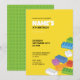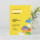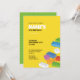 Una divertida invitación a la fiesta de bloques de construcción en colores vibrantes y con un diseño de placa base verde en la parte posterior. ¡Perfecto para cualquier celebración de cumpleaños infantil con un tema de ladrillos!