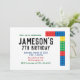 ¡Invitación a la fiesta de cumpleaños de Building Block para una fiesta de cumpleaños número 7! © 2022 Tea Olive Co.