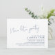 Esta es la invitación a la fiesta de boda y huida, con diseño de letra Navy Blue minimalista (Ahora vamos a festejar Invitación)