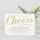 Esta invitación chic y elegante es perfecta para una fiesta sofisticada que celebre los cincuenta años de bodas de una afortunada pareja. La invitación presenta el sentimiento "Brindis por cincuenta años increíbles" en una hermosa caligrafía dorada, sobre un fondo crema marfil.