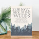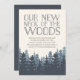 Invite a amigos y familiares a su nuevo cuello del bosque con nuestras invitaciones para fiestas de invierno. Las tarjetas rústicas de moda en blanco y azul marino ahumado cuentan con un frondoso bosque de pinos sobre un fondo de marfil, con "nuestro nuevo cuello del bosque" con letras azul marino ahumadas. Personalice los datos de su fiesta utilizando los campos proporcionados.