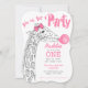 Invitación a la fiesta de chicle rosa y jirafa