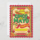 Esta invitación temática de Cinco de Mayo es la manera perfecta de preparar el escenario para su fiesta mexicana. En la parte superior hay un gran sombrero con las palabras Cinco de Mayo Fiesta. La frontera enlatada recuerda a papel picado que cuelgan de las calles de México. Personalizar esta invitación con todos tus detalles de fiesta. Los colores son rojo, amarillo, naranja, verde y negro.