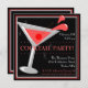 Un martini rojo brillante con solo un toque de emoción adorna esta invitación para una fiesta de cóctel. ¡Cada línea se puede personalizar según tus necesidades!