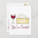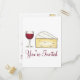 Sólo personaliza con tu información de evento! El diseño de la invitación al estilo de las postales presenta un original ilustracion de marca de una cuña de queso cremoso brie y un vaso de vino tinto, con USTED INVITADO en un divertido tipo de letra. Este ilustracion de vino y queso brie también está disponible en otros productos fiestas coordinadores. ¿No ves lo que estás buscando? ¿Necesita ayuda con la personalización? Haga clic en "Contactar con este diseñador" para tener algo creado sólo para usted.