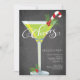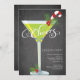 ¡Divertidos CHEERS modernos! Invitación a la fiesta de cócteles de vacaciones retro con una lujosa copa de martini verde con un agujero en el tallo sobre un popular y moderno fondo de pizarra negra. Ideal para años nuevos, fiesta, fiesta de vacaciones, fiesta de navidades, fiesta de oficina, Trim el fiesta del árbol o cualquier fiesta especial de invierno se reúnen.