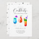 Divertida invitación a la fiesta de cócteles y conversación para un evento de destino con ilustración de coloridas bebidas de cóctel tropical.