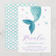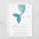 Invitación de Cumpleaños de Cola de Sirena Bajo el Mar. La invitación presenta una cola de sirena en acuarela en tonos turquesa. Edite todo el texto para que se adapte a su evento.