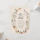 Invitación a la fiesta de compromiso boho. Esta tarjeta de felicitación de compromiso elegante y con estilo presenta hermosas flores silvestres pintadas a mano con acuarela dispuestas en un hermoso ramo perfecto para bodas de primavera, verano u otoño. Encuentre artículos coincidentes en la Colección de Bodas de Flores Silvestres Boho.