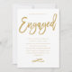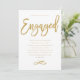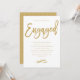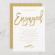 Moda y moderna invitación de fiesta de compromiso para el futuro Sr. y Sra. con letras de oro modernas y un diseño de fondo con estampado.