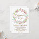 Invitación a la fiesta de compromiso de la floral floral colorida invitación caprichosa y femenina con corona floral en rosa, rubia, té verde y verde menta.