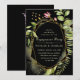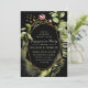 Una elegante Invitación de Engagement Party con acuarela color verde salvaje con flores rosadas en fondo negro. Para una personalización más avanzada de este diseño, haga clic en el botón "Personalizar" de arriba. También están disponibles los elementos coincidentes.