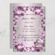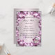 flores moradas de bonito sobre un fondo morado. Sorprenda a sus amigos y familiares con una encantadora invitación a una fiesta de compromiso que combina el estilo clásico con detalles frescos y modernos cuando envíe esta elegante invitación. Esta hermosa tarjeta de invitación está lista para ser personalizada. Personalice la tarjeta cambiando el texto en los campos proporcionados delante y atrás. Puede cambiar el estilo de fuente, el tamaño y el color, así como el tipo y estilo de papel.