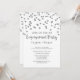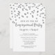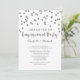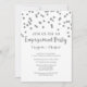 Invitaciones a la fiesta de compromiso de plantilla Personalizado en glamoroso patrón de confeti plateado y texto de estilo con letras a mano. Tenga en cuenta que el purpurina sólo está impreso.