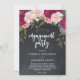Bonita invitación a la fiesta de compromiso de diseño floral de color burdeos y rosa, con un fondo de pizarra, con acentos verdes y un lado de tiza coordinado. Fácil de editar o borrar los campos de texto disponibles para personalizar la información con sus propios detalles para una invitación de aspecto profesional y personalizado. Muchos elementos coincidentes de esta colección de boho. Por favor visite mi tienda para ver la gama completa y para crear un conjunto de artículos usando este encantador diseño.