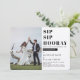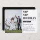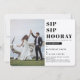 Elegante invitación a la fiesta de compromiso fotográfico "Sip Sip Hooray". Personalice reemplazando la foto y el texto.