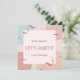 Invitaciones cuadradas para fiesta de compromiso con fondo abstracto en tonos neutros rosa y beige. La invitación es totalmente personalizable, por lo que puedes cambiar fácilmente todo el texto.