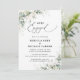 La invitación de la fiesta de compromiso de eucalipto minimalista presenta un diseño limpio y elegante con delicados acentos de vegetación de eucalipto, creando una apariencia fresca y moderna. Su estilo minimalista resalta los elementos botánicos naturales mientras mantiene una estética refinada y sofisticada, lo que la hace perfecta para celebraciones de compromiso, fiestas en el jardín o reuniones íntimas. Esta invitación combina perfectamente con papelería coordinada para crear un conjunto de eventos coherente y elegante.