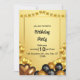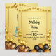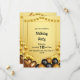 Establezca el escenario para una glamorosa celebración de cumpleaños con esta lujosa tarjeta de invitación de oro y negro. Decorada con brillantes globos metálicos, acentos en forma de corazón y banderas festivas, esta carta desprende elegancia y festividad. El rico fondo dorado y el negrita negro hacen que los detalles de tu fiesta destaquen maravillosamente. Ideal para fiestas de adultos o eventos de lujo, esta invitación dejará una impresión duradera a sus huéspedes. Personalizable completo para adaptarse a la fecha y los detalles de su evento.