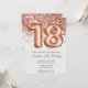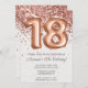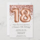 Invitación a la fiesta de cumpleaños 18 del Rosa Gold y elegante rosa de oro, invitación a la fiesta de 18 años para un chica de 18 años con escritura moderna de escritura y divertidos globos de Relieve metalizado con papel de textura impreso.