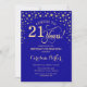 Invitación a la fiesta de cumpleaños número 21. Elegante diseño con falso oro purpurina y azul real. ¡Salud a 21 años! Mándame un mensaje si necesitas más personalización.