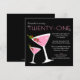 Nuestro Fiesta Rosa Martini 21º cumpleaños incluye lustrosos martinis rosas con guirnaldas de oliva junto con un texto rosa bonito "Veintiún" sobre un fondo negro dramático.