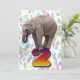 Una divertida invitación para la fiesta de cumpleaños del mono descarado de tu familia. Un elefante bebé parado en un número, con muchos números cayendo en el fondo. La parte de atrás tiene elefantes en patinetas.
