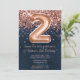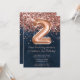 Invitación a la fiesta de cumpleaños 2º de la Marina de Oro Azul Rosa y elegante rosa de oro en 2º cumpleaños para una chica de 2 años con escritura moderna y divertidos globos de Relieve metalizado.
