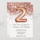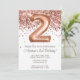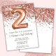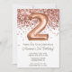 Invitación a la fiesta de cumpleaños número 2 de oro Rosa y rosa de oro elegante y moderna invitación a la fiesta de cumpleaños 2 para un chica de 2 años con escritura moderna de escritura y globos de Relieve metalizado divertidos.