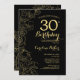 Invitación a la fiesta de cumpleaños 30 de Black Gold Floral. Diseño moderno minimalista con dibujos botánicos de contorno acentos, Relieve metalizado de oro falso y tipo de letra de escritura tipográfica. Sencilla carta de invitación a la moda, perfecta para una elegante celebración de cumpleaños femenina. Se puede personalizar a cualquier edad. Invitaciones Zazzle impresas o una plantilla imprimible digital de descarga instantánea.