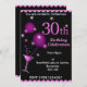 30.ª invitación a la fiesta de cumpleaños, rosa y negro con cóctel de vidrio