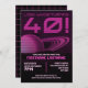 Celebra el gran estilo retro 4-0 con esta radical Invitación de cumpleaños Retrowave! Diseñado al estilo clásico de Synthwave de los años 80, tiene un color de neón brillante y unas líneas de cuadrícula futuristas, perfectas para los amantes de la vaporwave, outrun y la nostalgia retro. Esto es justo lo que necesitas para una celebración inolvidable.