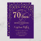 70.ª Invitación a la fiesta de cumpleaños. Elegante diseño con un falso oro purpurina y morado. ¡Saludos a 70 años! Mándame un mensaje si necesitas más personalización.