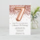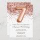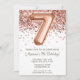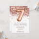 Invitación a la fiesta de cumpleaños 7 Rosa Gold y elegante rosa de oro, invitación a la fiesta de cumpleaños 7 para un chica de 7 años con escritura moderna de escritura y divertidos globos de Relieve metalizado.