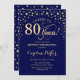 80.ª Invitación a la fiesta de cumpleaños. Elegante diseño con un falso oro purpurina y azul marino. ¡Saludos a 80 años! Mándame un mensaje si necesitas más personalización.