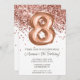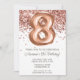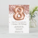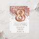Rosa Oro 8º cumpleaños Invitación de fiesta y elegante rosa oro invitación a fiesta de octavo cumpleaños para un chica de 8 años con escritura moderna de escritura y divertidos globos de Relieve metalizado.