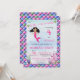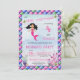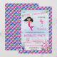 ¡Esta adorable invitación de cumpleaños a la sirena rosa y azul la emocionará por su próximo cumpleaños! El fondo delantero y la parte posterior de la tarjeta presentan escalas de sirena multicolores sobre un fondo azul. Esta sirenita tiene el pelo oscuro. Los elementos relacionados con la sirena de coordinación con este diseño están disponibles en mi colección Little Mermaid Pink and Blue Birthday en mi tienda Zazzle: